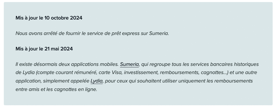 Mais ce repositionnement a dérouté une partie de la clientèle. Face à la perte de nombreux utilisateurs attachés aux services historiques de Lydia, l’entité a finalement fait marche arrière et relancé la marque Lydia en parallèle de Sumeria, afin de clarifier son offre.